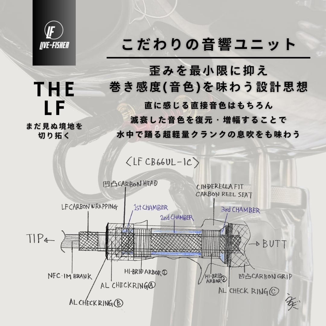 また、手元剛性の大幅強化のため、"低レジンカーボングリップ × LFカーボンラッピング"をドッキングさせた捻じれ合成に優れたモノコック構造。